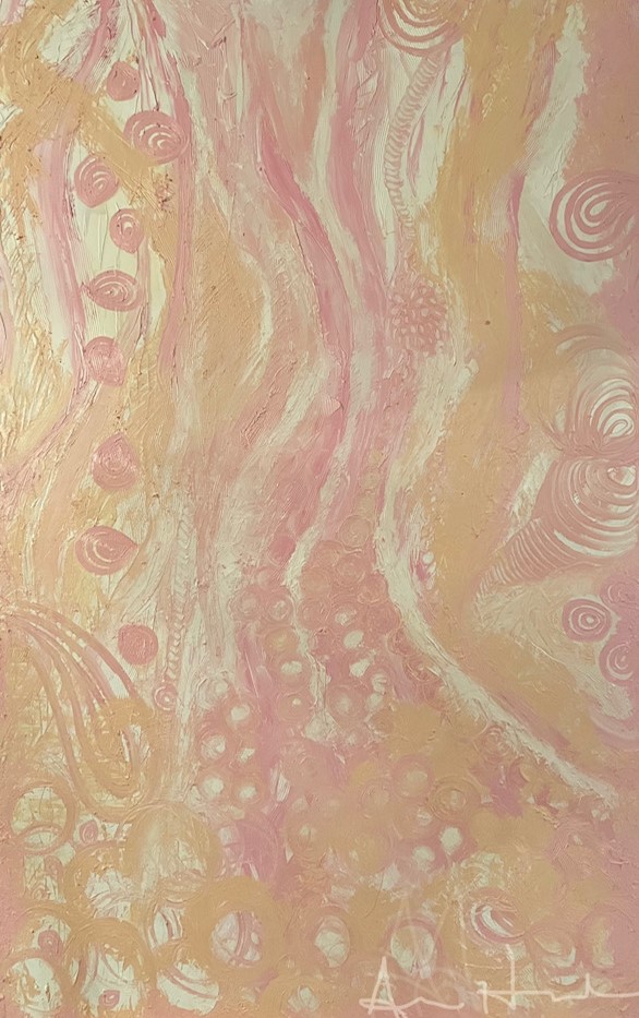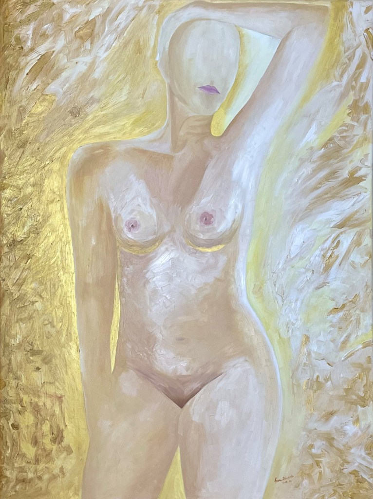 Shimmering Champaign, Anna Huerta, Oil on Canvas, 24″ x 36″, 2021