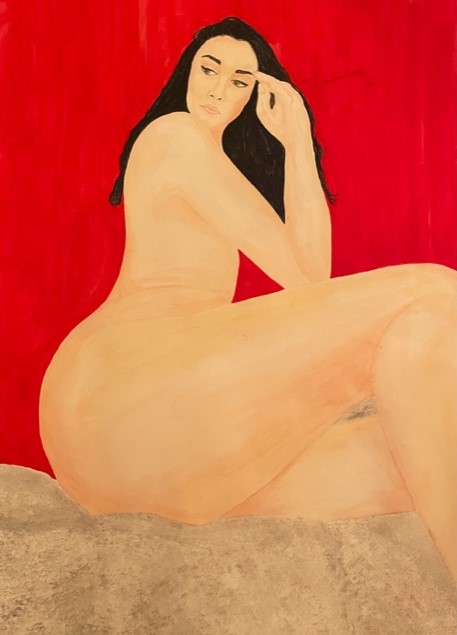 Self-Portrait in Red, Anna Huerta, Watercolor, 24″ x 30″, 2022