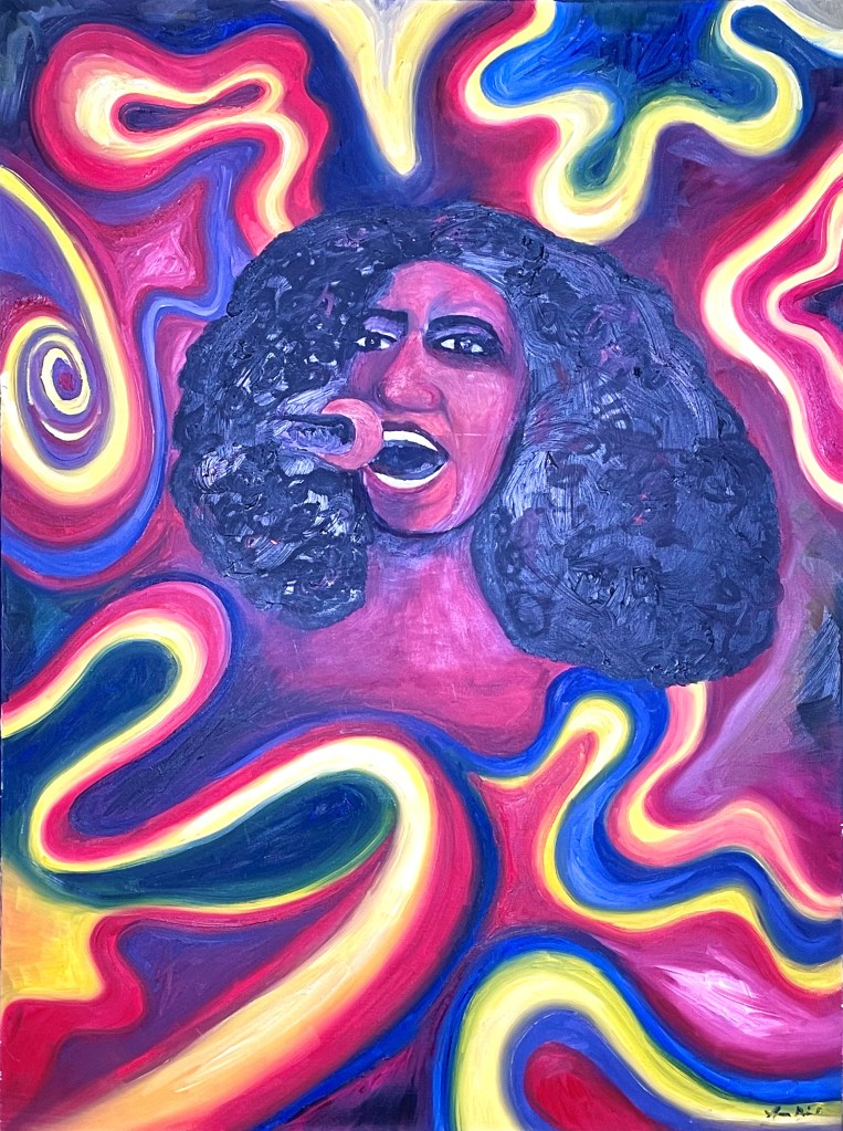 Backup Singer DMB, Anna Huerta, Oil on Canvas, 24″ x 36″, 2016