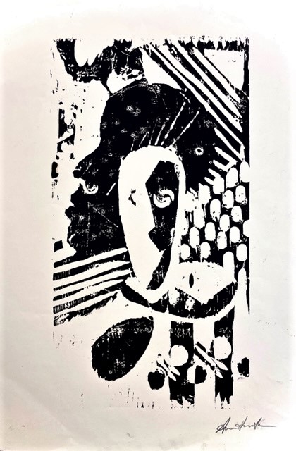 My Scars, Anna Huerta, Linoleum Block Print, 5″ x 7″, 2022