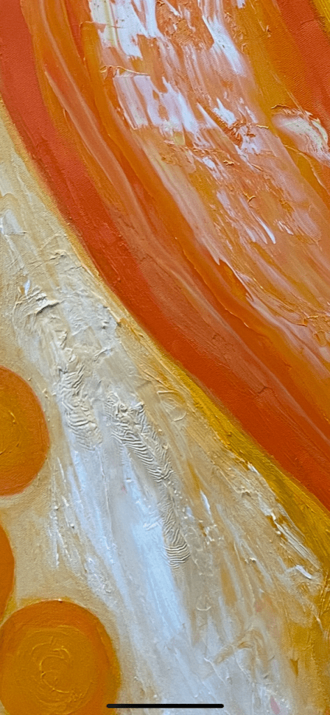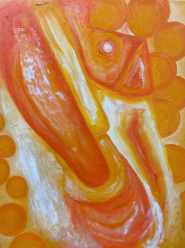 Blisfully Orange, Anna Huerta, Oil on Canvas, 36″ x 48″, 2023