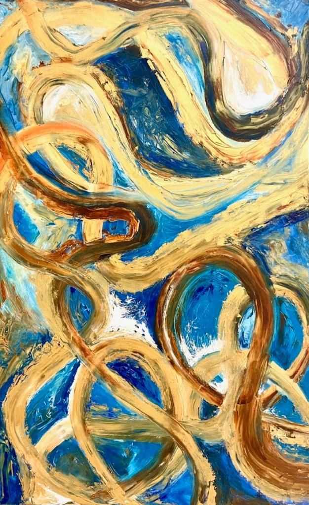 Golden Pathways, Anna Huerta, Oil on Canvas, 30″ x 48″, 2023.