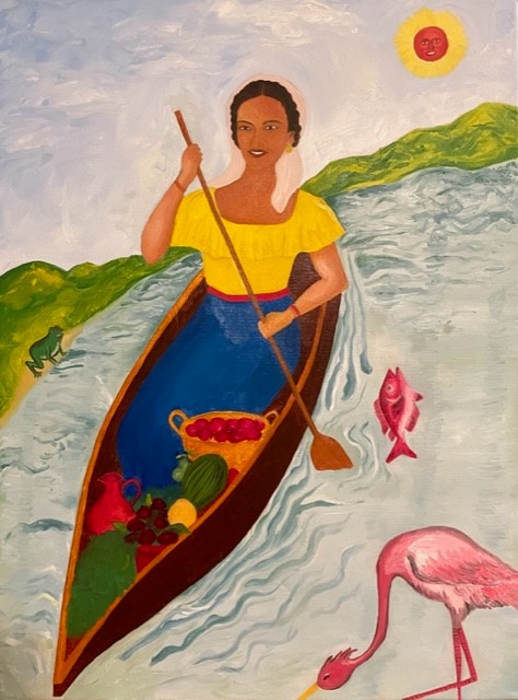 Mi Abuela Es La Chalupa, Based on the Loteria Card, Anna Huerta, 18″ x 24″, Oil on Canvas, 2023.